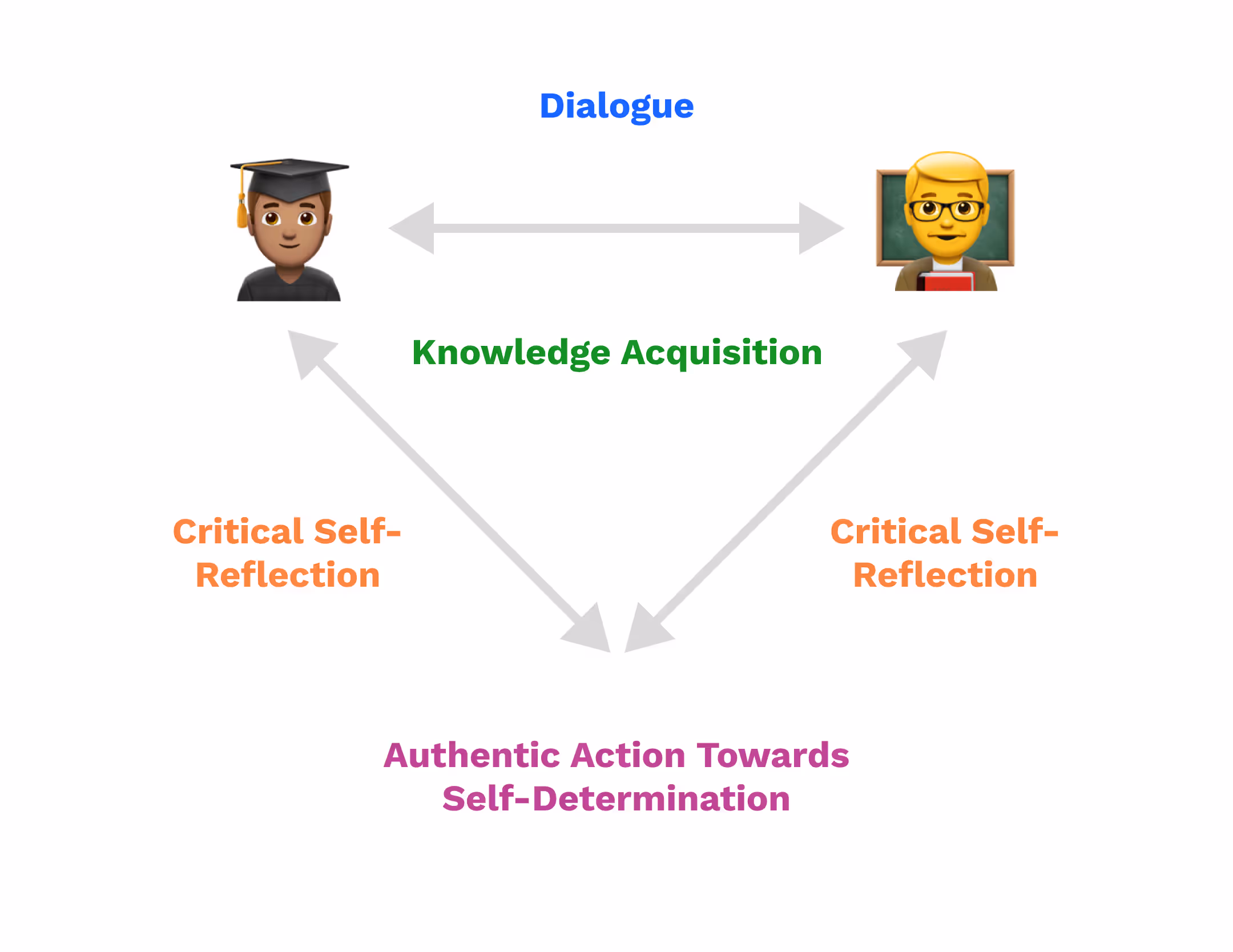 The relationship between teacher and student becomes a mutual educational process between Subjects. This ebb-and-flow of inquiry does not serve oppressors, after all, questioning "why?" will make their skin crawl at the rebuke of their power, things must be fixed to their objectivity. Therefore problem-posing exists outside a dogmatic pyramid of alienation and authoritarianism, by existing outside of this social object, we can mutually transform our knowledge of the world towards action that transforms it. Revolution becomes a vocational role expressed in solidarity with the oppressed through dialogical action. In the next chapter, we we will explore generative themes and its application to curriculums of praxis towards awakening critical consciousness.